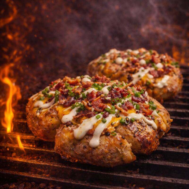 Papas seleccionadas, aplastadas y doraditas a la plancha con mantequilla y lemon pepper. El complemento obligatorio.