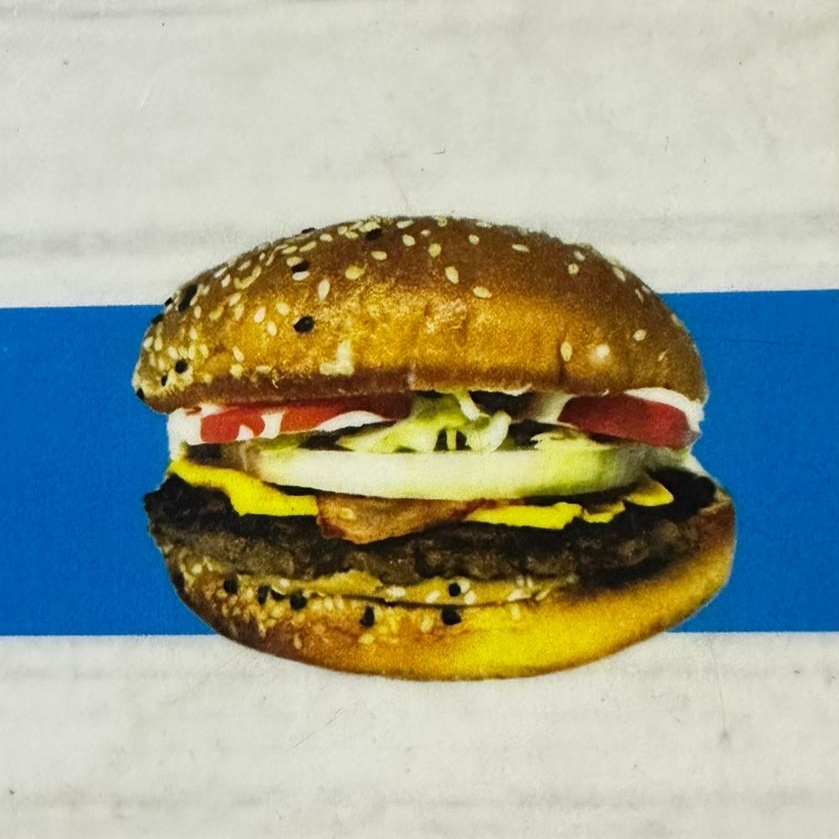 100 gr de carne molida del día, queso americano y tocineta montada en delicioso pan casero, lechuga, tomate y cebolla, incluye papas fritas.