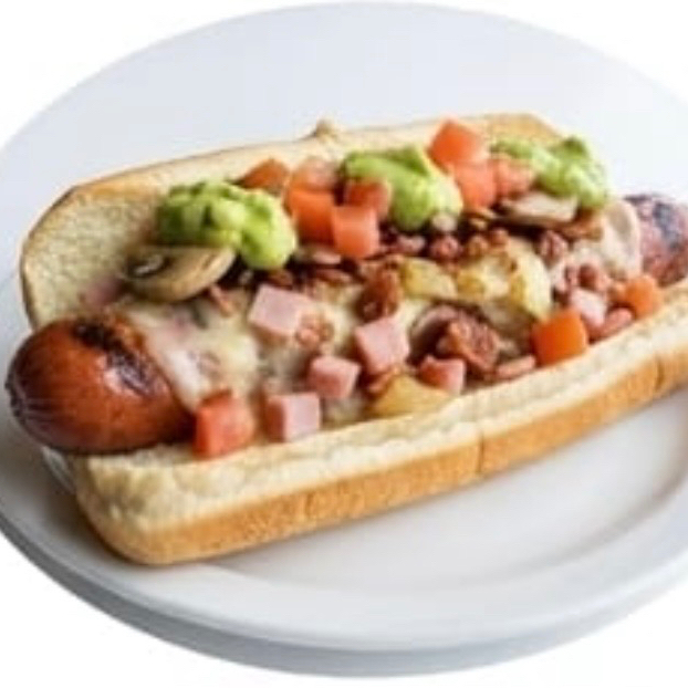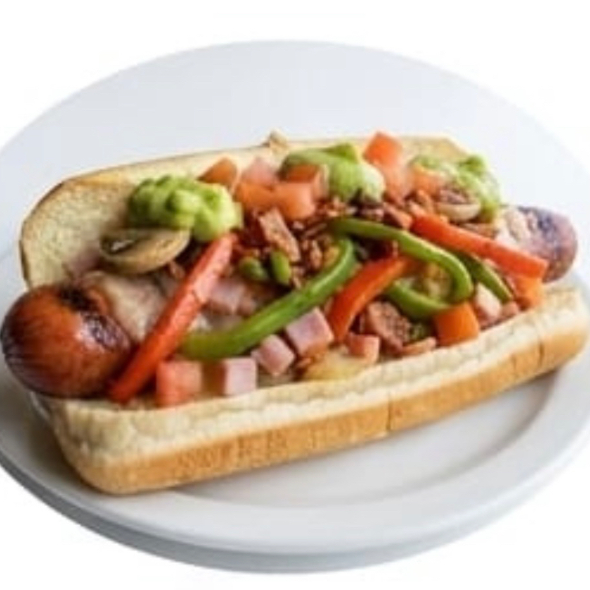Dogo salchicha , jamón , queso , chihuahua, tocino , cebolla , tomate , champiñones, aguacate