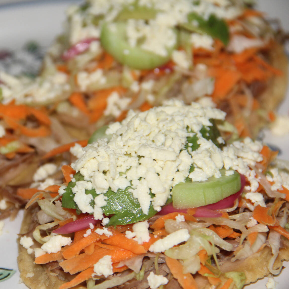 3pzas de ricas tostadas caseras. Pollo desmenuzado, frijolitos, sus verduras y queso oreado por encima.