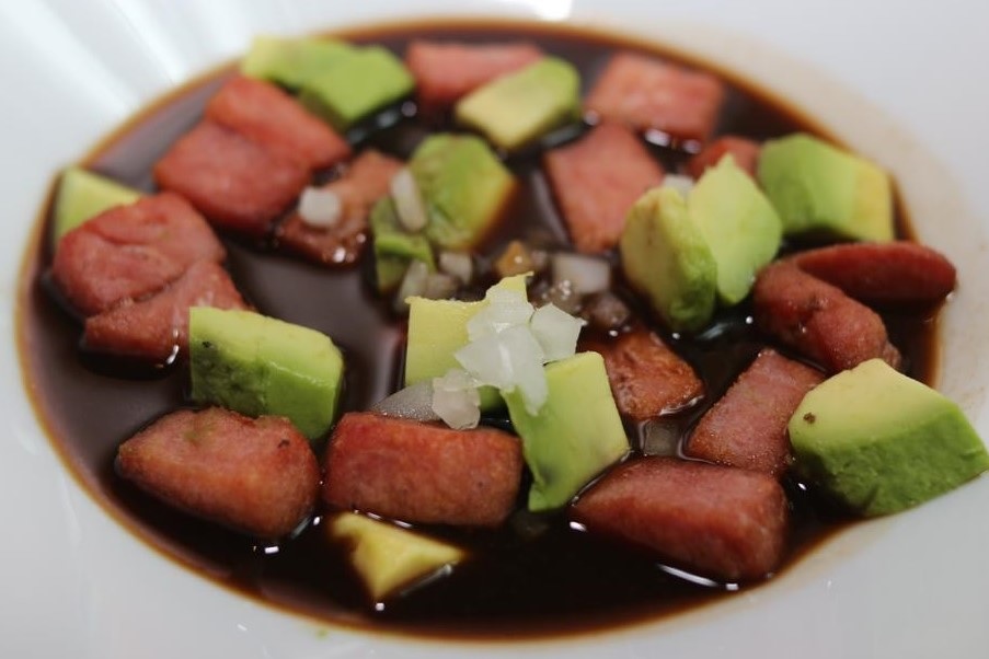100 Gramos de atún sellado, aguacate y cebolla blanca en nuestra salsa negra.