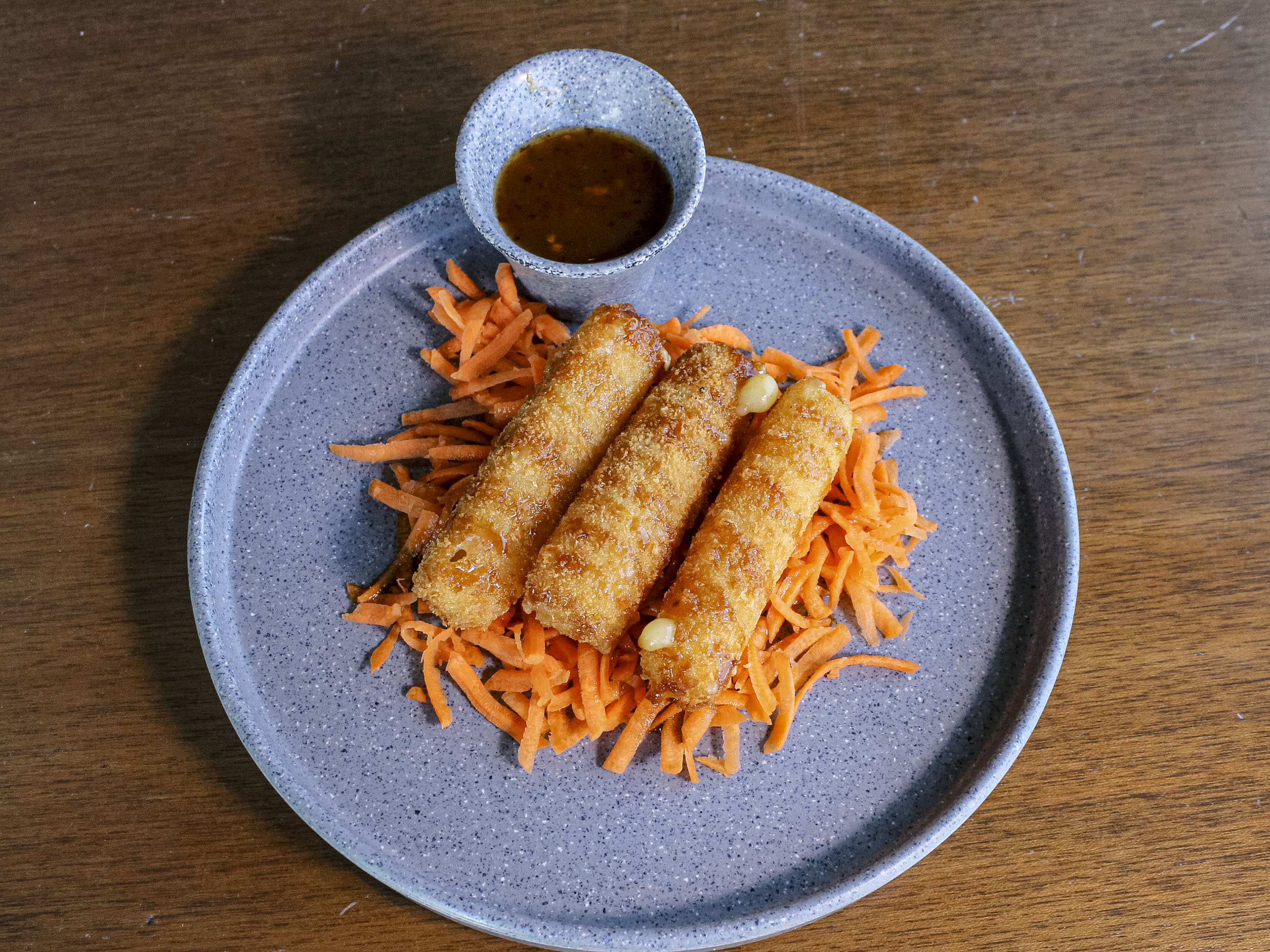 Camarones bañados con nuestro agridulce spicy, acompañado de aderezo.