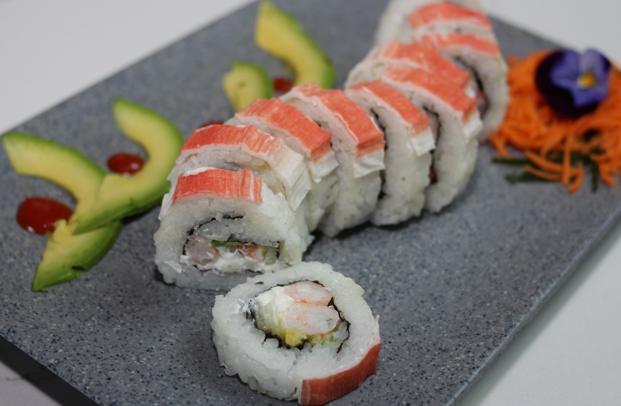 12 pz. Camarón, phila, aguacate y pepino. Por fuera surimi, camarón empanizado, queso chihuahua y aderezo chipotle.