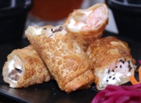 4 pza/ 240 gr. Atun, tampico, mayonesa, togarachi y sriracha sobre cama de arroz empanizado.