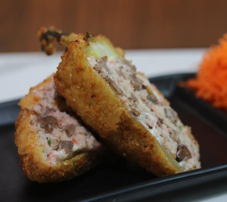 110 Gramos de chile caribe empanizado relleno.