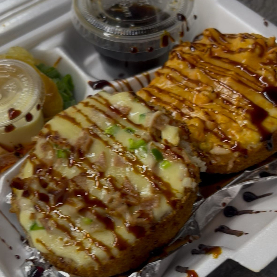 Aguacate, philadelphia, res, camarón, bonneles con salsa a elegir picados con queso gratinado encima (250 g).