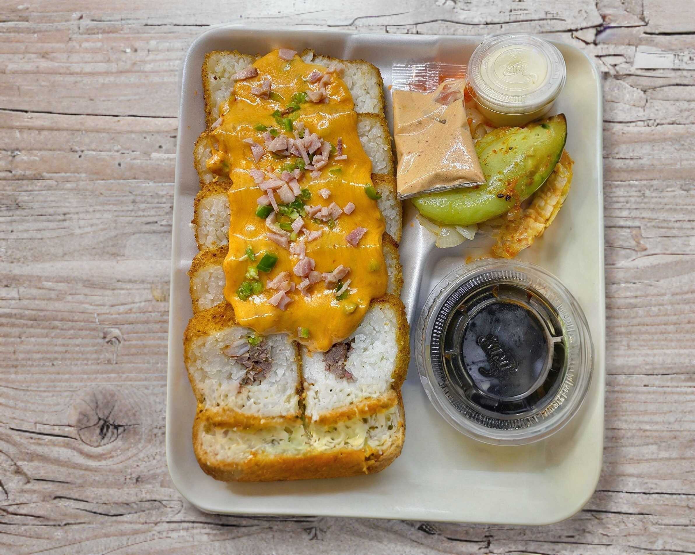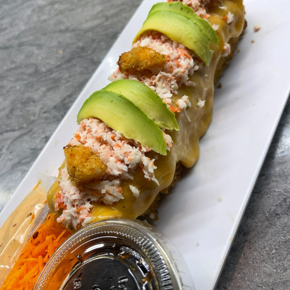 Aguacate, philadelphia, res, camarón, bonneles con salsa a elegir picados con queso gratinado encima (250 g).