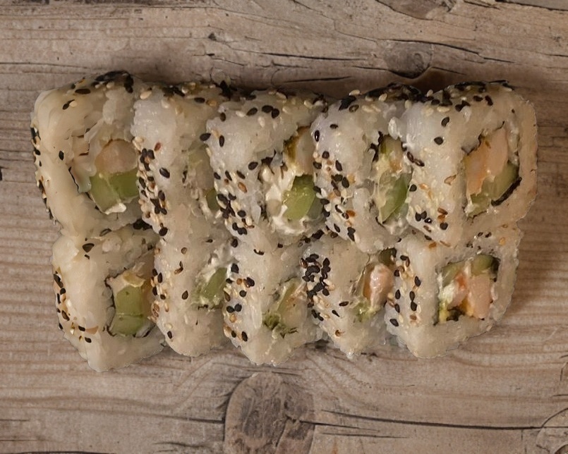 Aguacate, philadelphia, pepino, camarón, por fuera: ajonjolí (200 g).