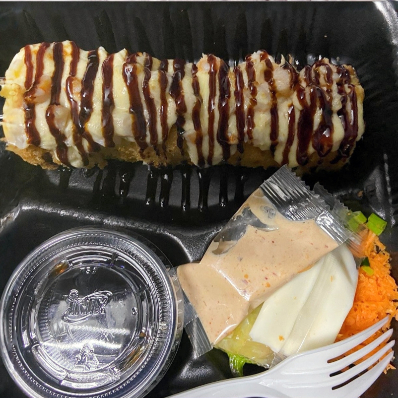 11 rolls de aprox (200g). preparadoAguacate, alga, Camaron, tocino por fuera queso y philadelphia