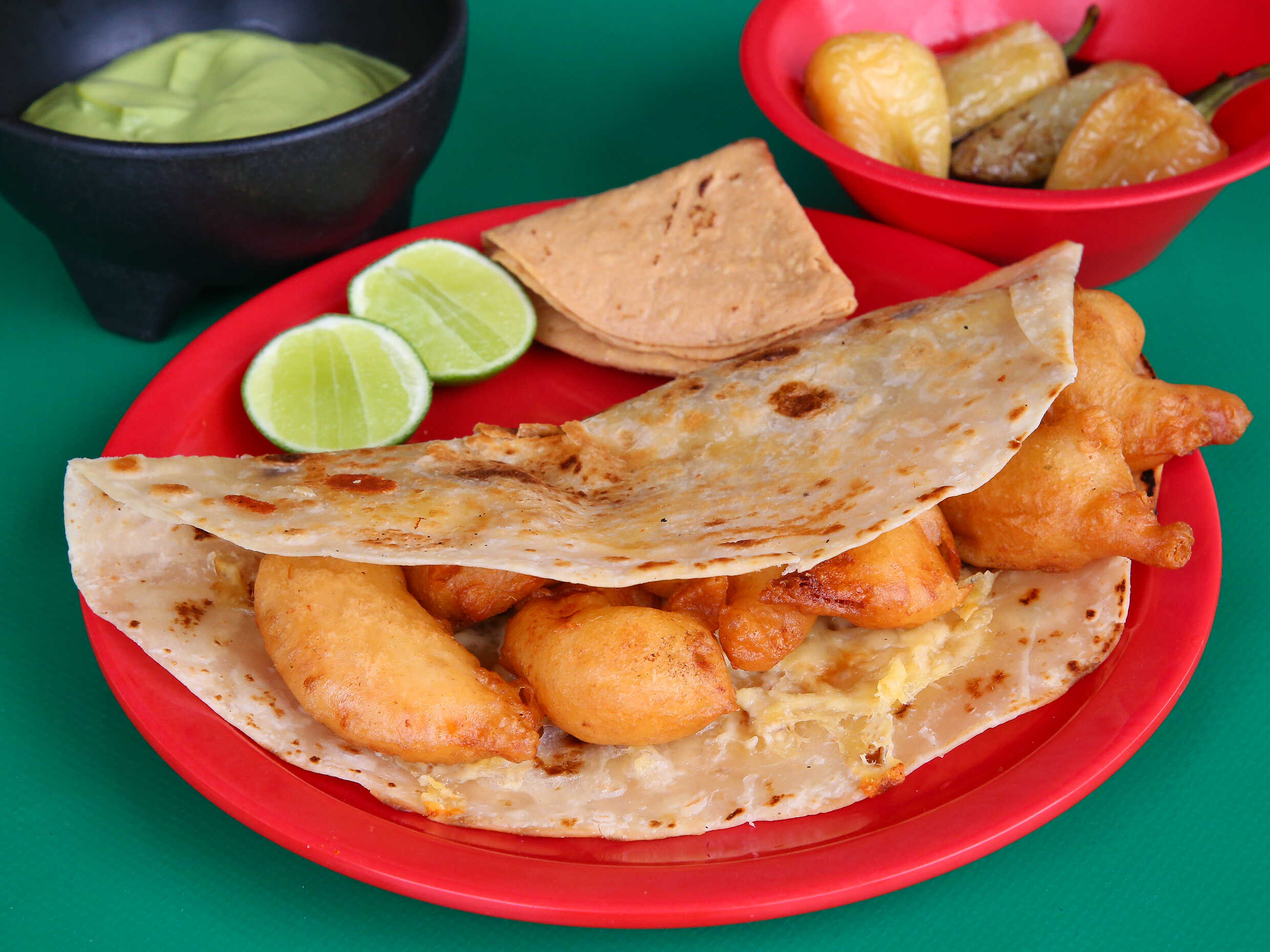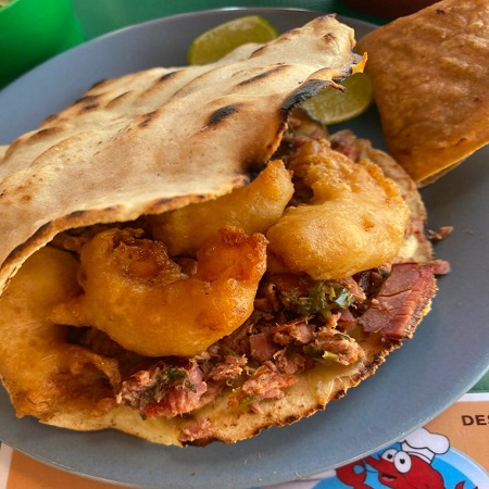 quesadilla de harina con camaron capeado
