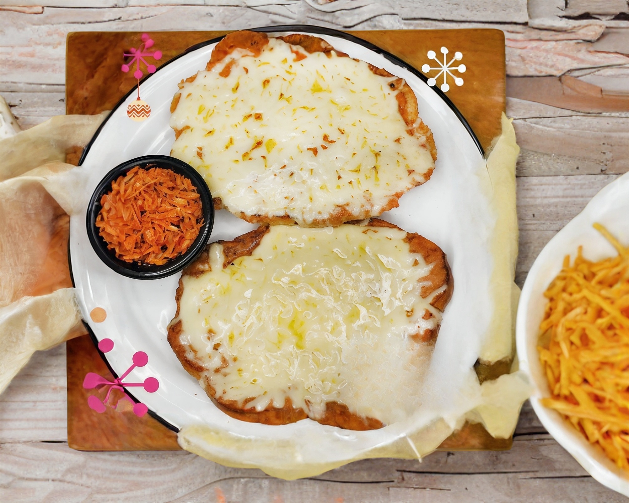 Orden de 3 pzas, rellenas de res o pollo y encima lechuga, zanahoria, cebolla, pepino, aguacate y queso. Acompañadas de frijol natural.