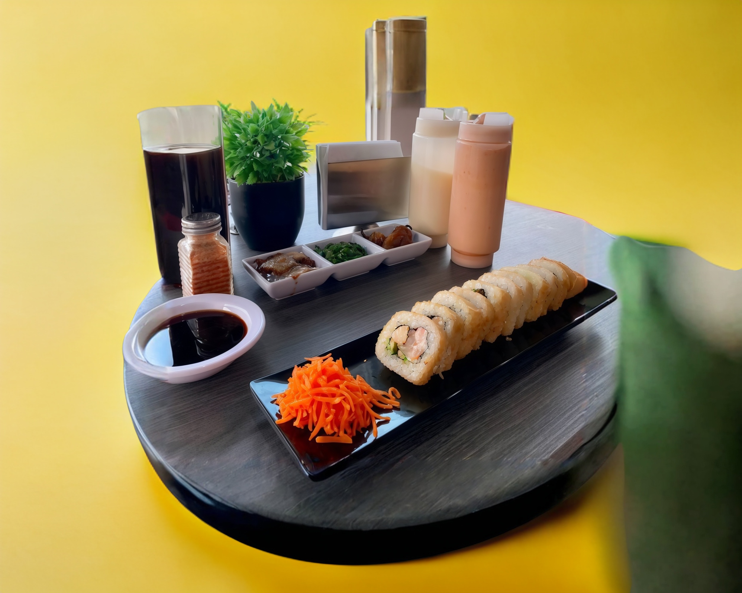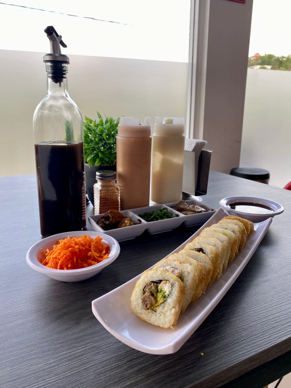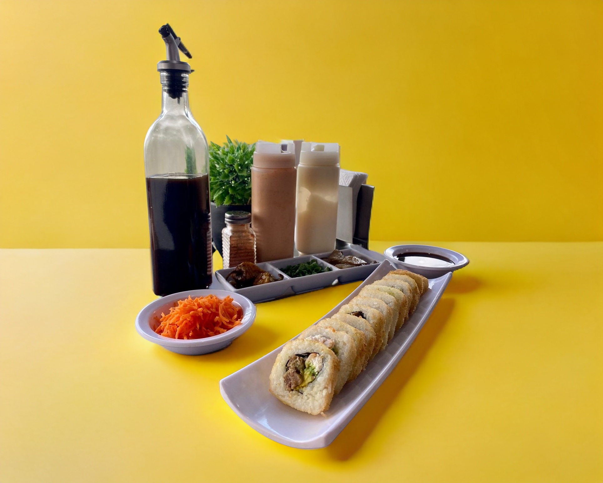 Relleno de res, tocino, philadelphia y pepino, forrado de aguacate, coronado con tampico spicy, salsa de anguila y ajonjoli.