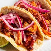tacos dobles con frijol cochinita lechuga cebolla curtida y salsas