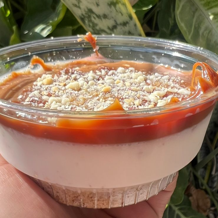 Cheesecake tamaño personal, sabor cajeta.