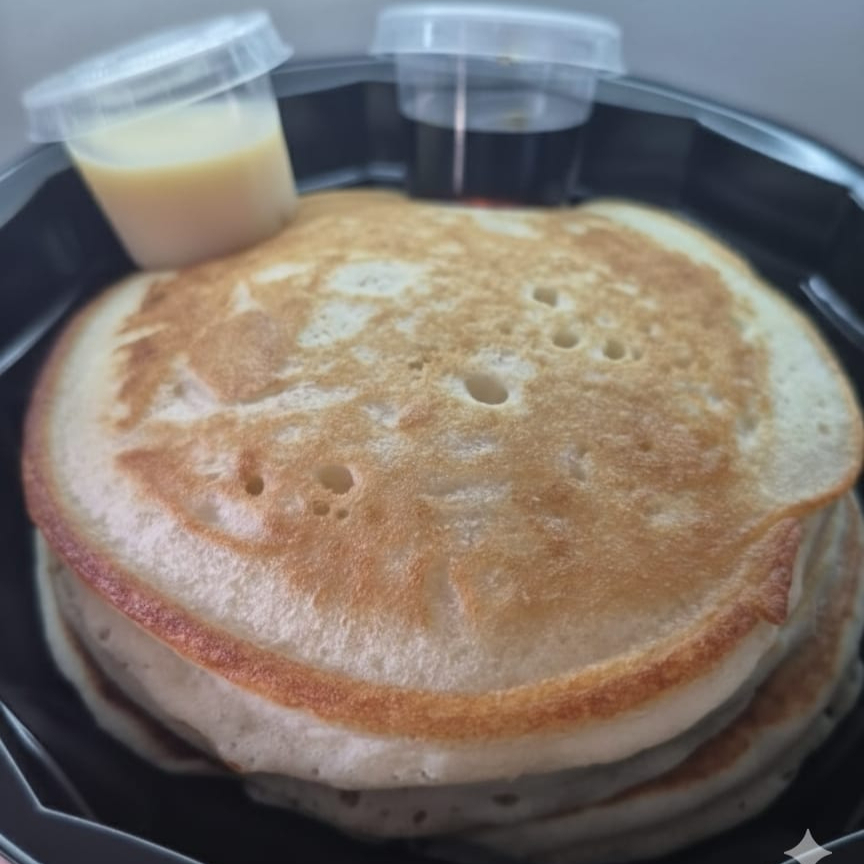 3 Piezas de hot cakes, acompañado de miel y La Lechera.