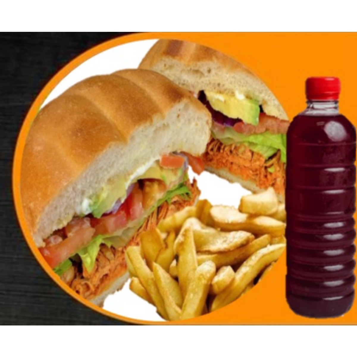 Torta de Pierna + Papas Fritas + Agua de Jamaica 500 ml.