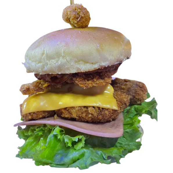 Pollo crujiente, jamón, queso americano y tocino