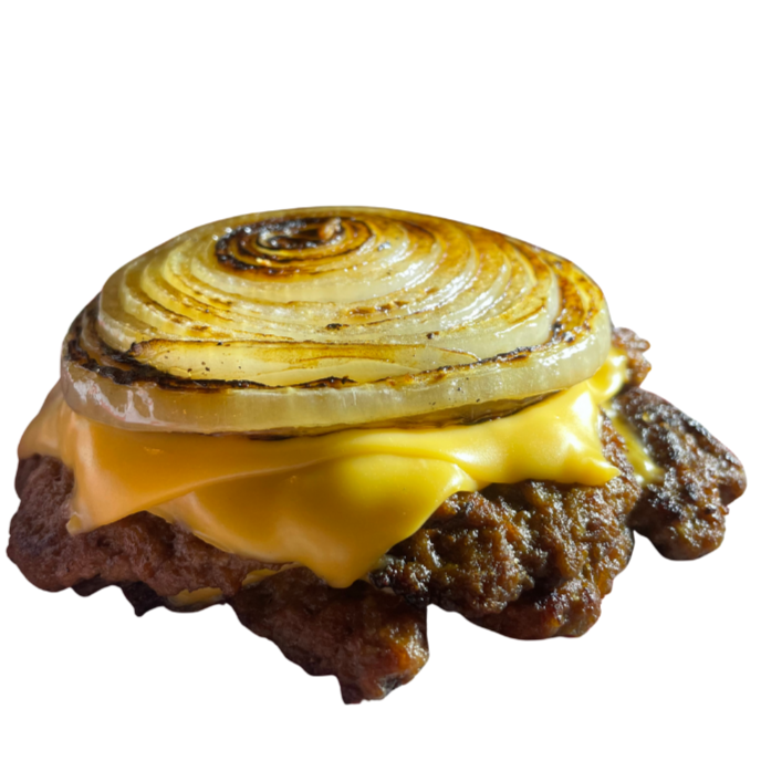 Doble carne, queso americano y cebolla caramelizada