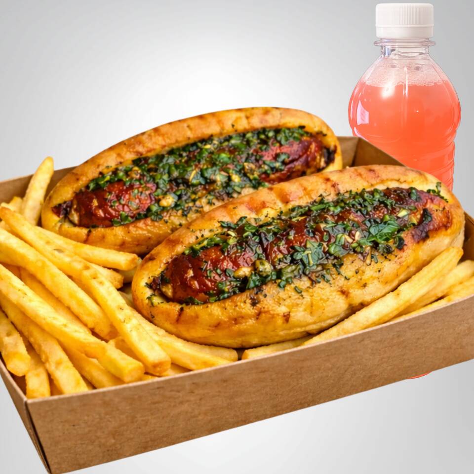 2 Choripan + Papas + Agua fresa limon