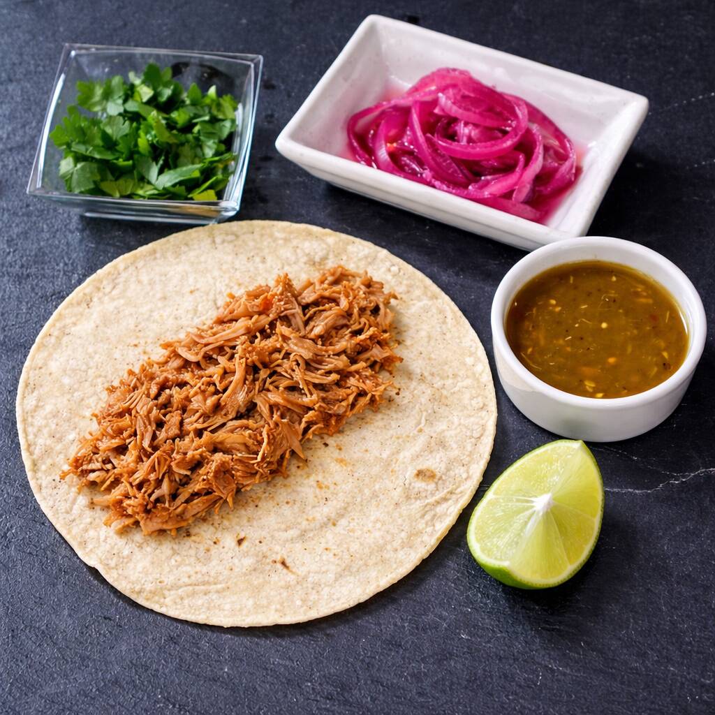 Tortilla de harina calientita con cochinita estilo tradicional, receta casera y sabor a casa.