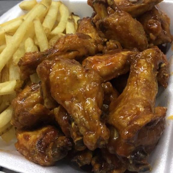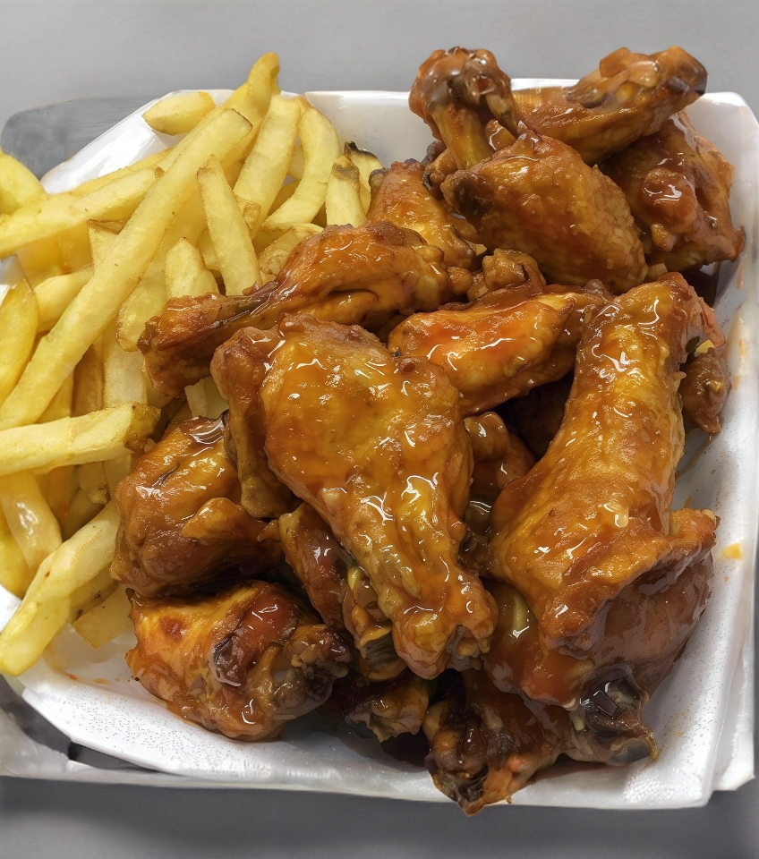 10 pzas. de crujientes alitas acompañadas de papas a la francesas.