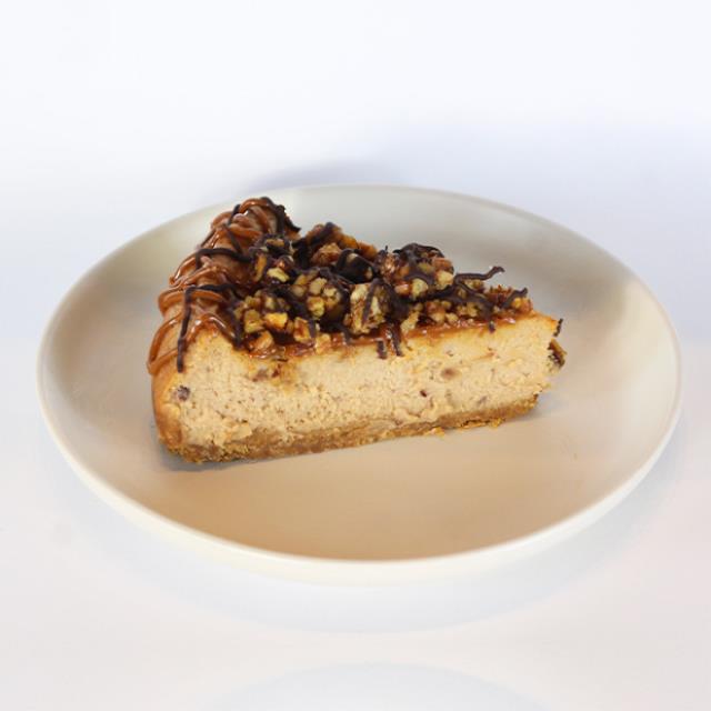 Base crujiente de galleta con nuez, cajeta, plátano y betún cremoso de queso crema.