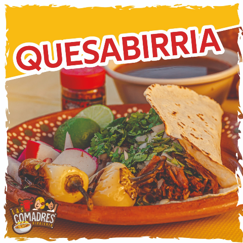 Birria de res en tortilla grande hecha a mano con queso gratinado.