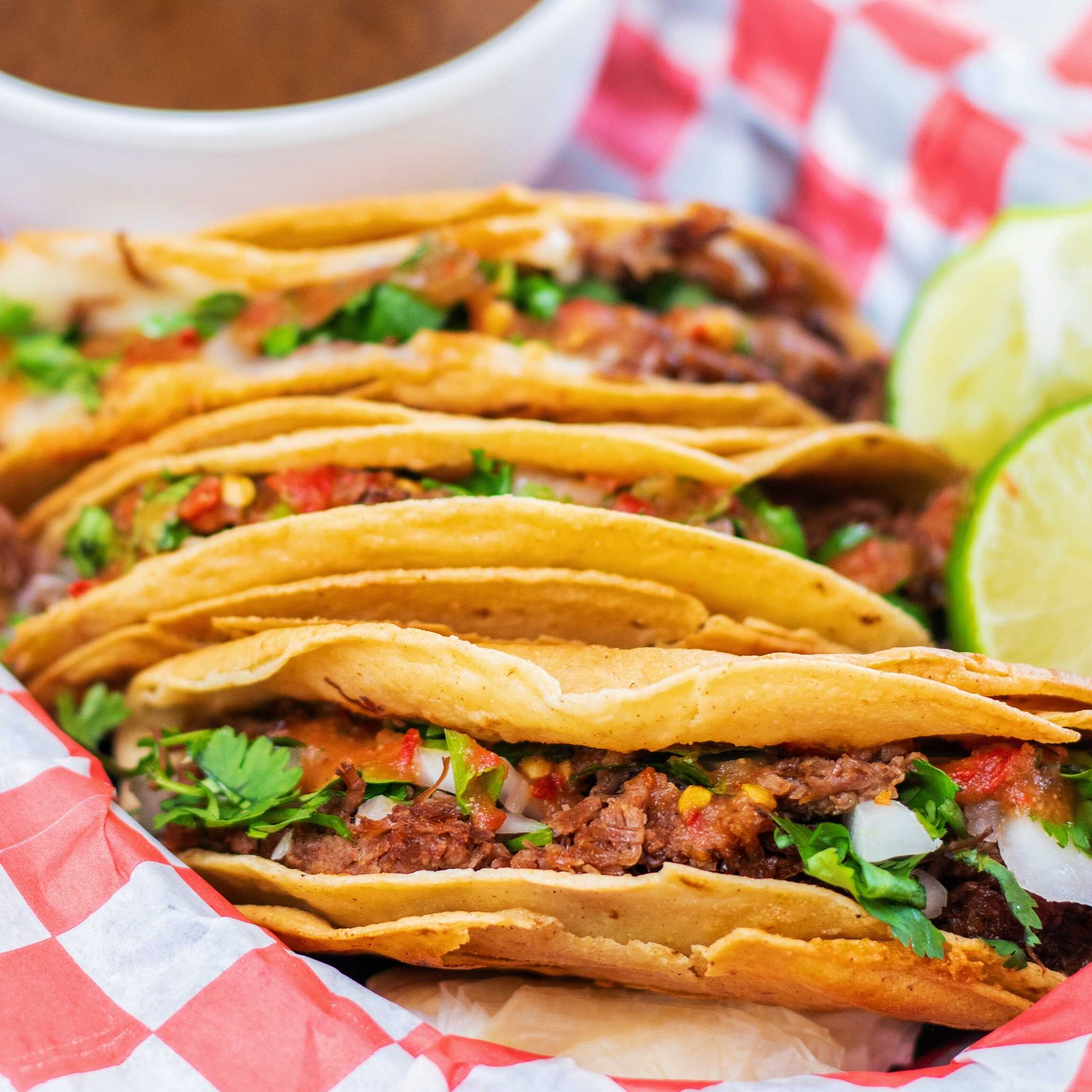 Con doble tortilla y carne, orden de 3 piezas.