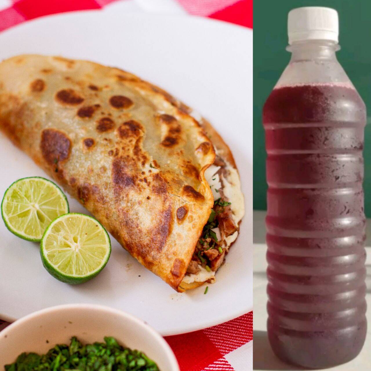 Deliciosa quesabirria de harina acompañada de su consomé, verdura, salsa, más un agua de 500 ml.