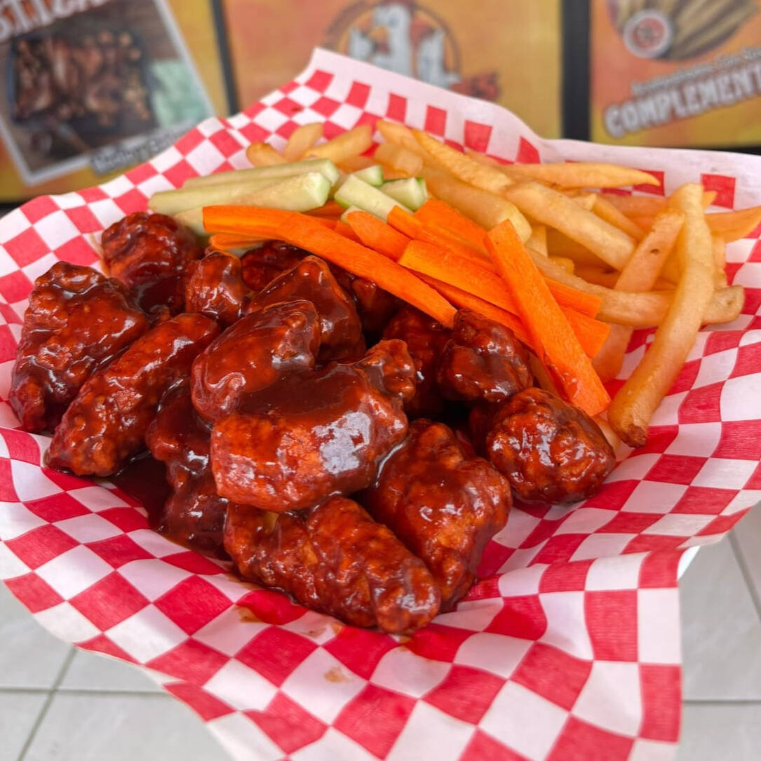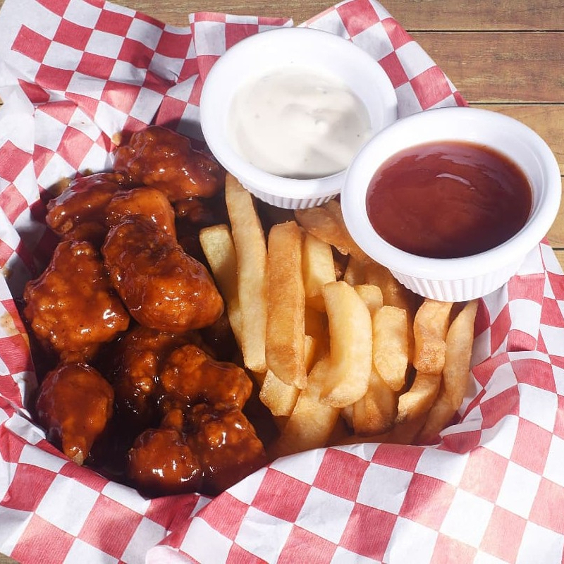 Orden de 250 gramos de boneless con papas a la francesa. Sabor a elegir