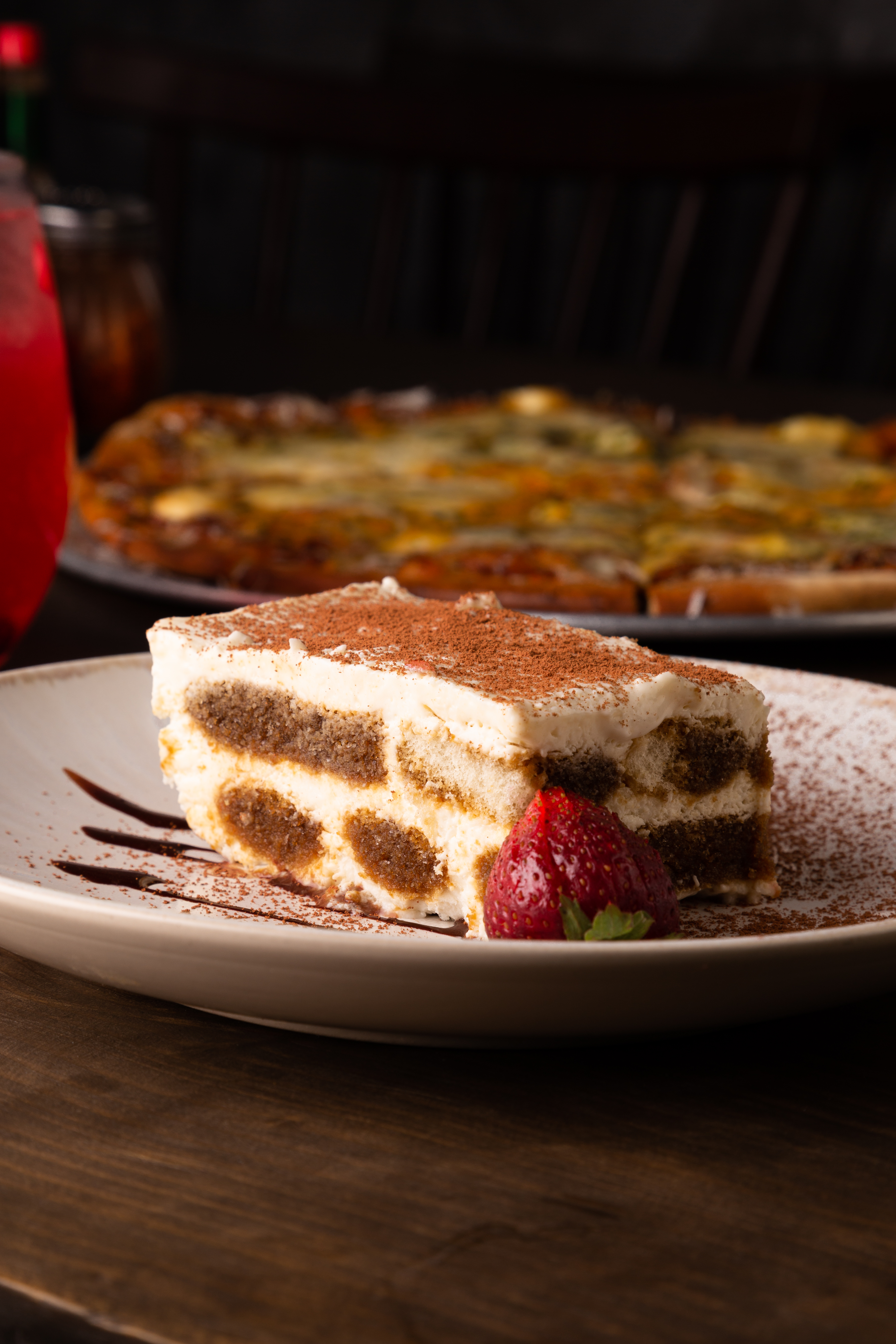 Postre tradicional italiano, elaborado con capas de bizcocho, embebido con jarabe de café y crema de queso, cubierto con cocoa.