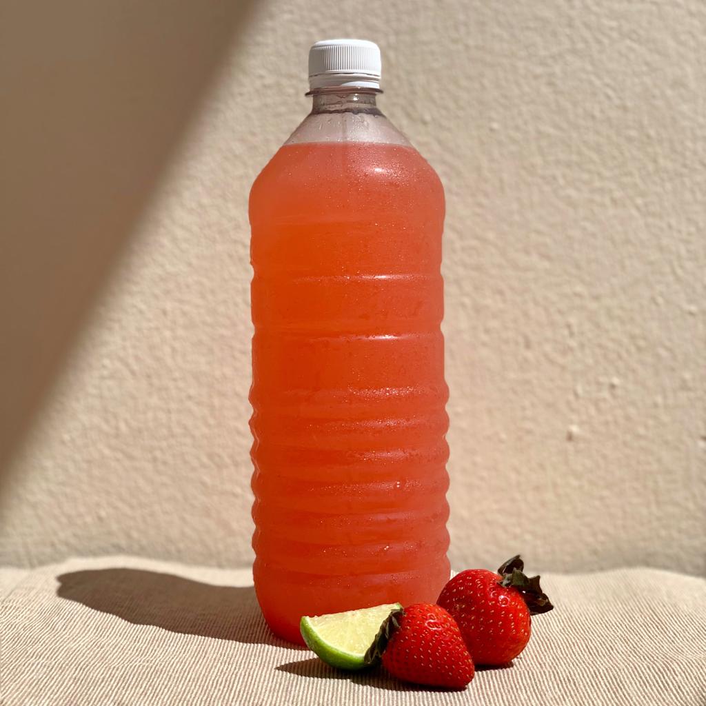 La bebida de la casa: limonada de fresa natural con un toque de yerbabuena.