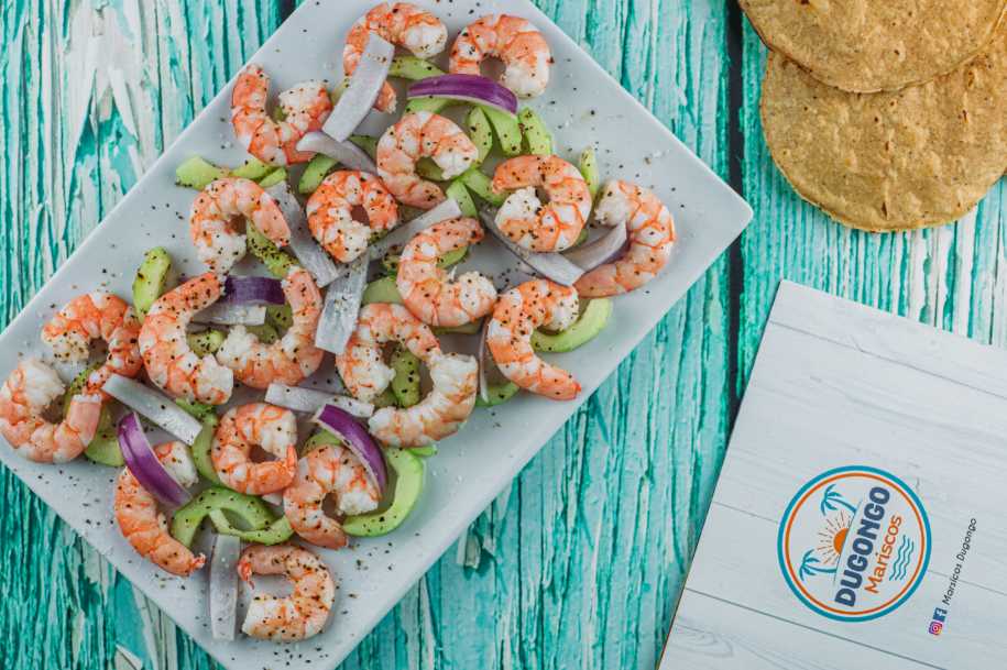 150 gr ingredientes, camaron crudo, aguacate y salsa de molcajete