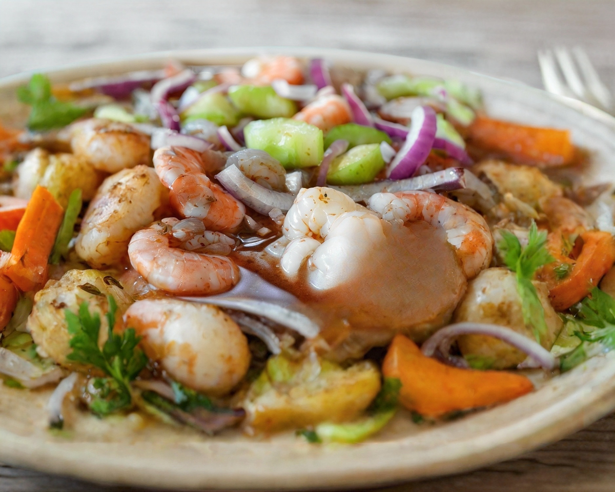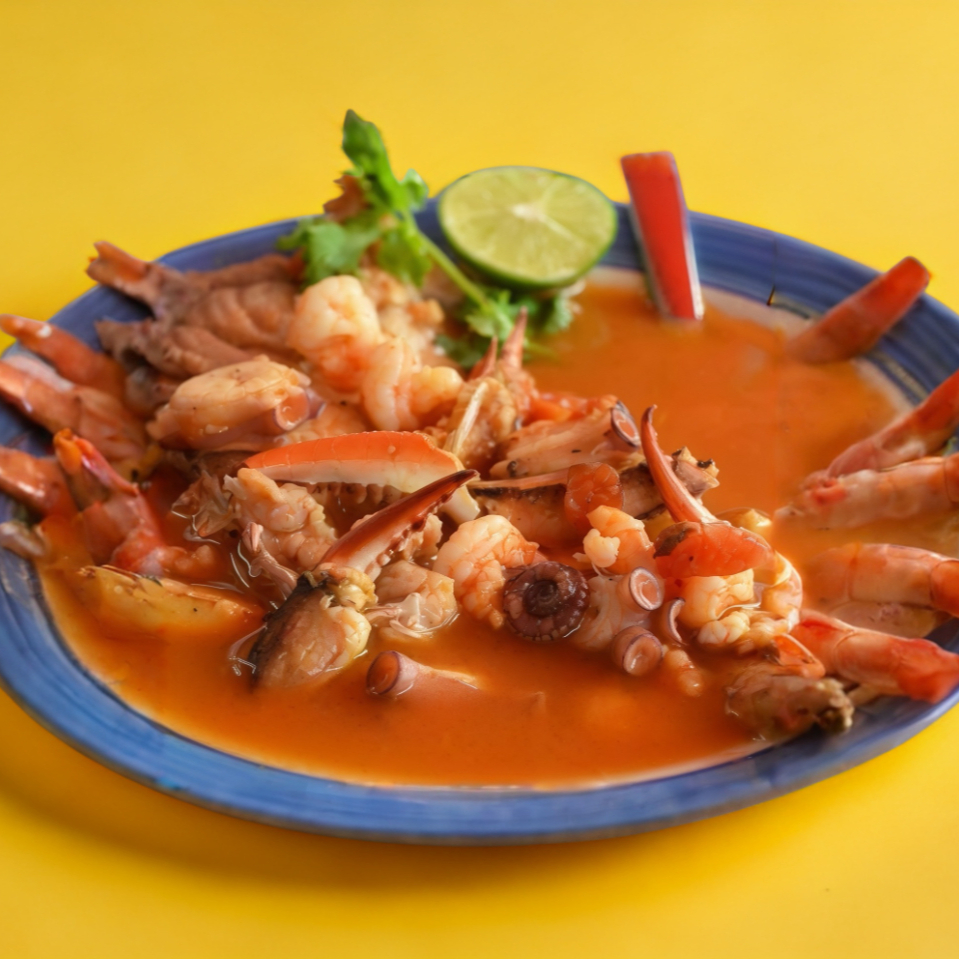 SOPA DE MARISCOS CON PESCADO,CAMARON,TENASA DE JAIBA,MEJILLONES Y CARACOL