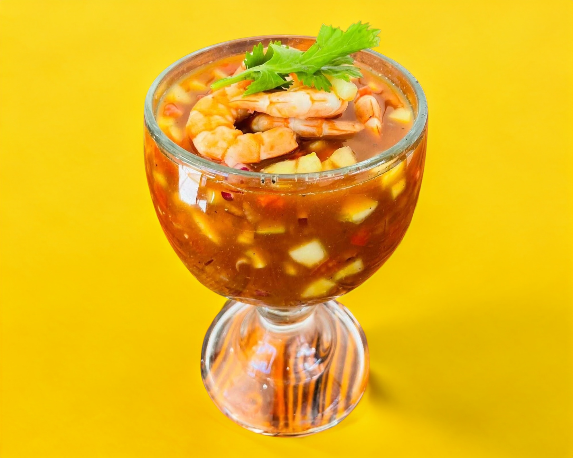 COCTEL DE CAMARONES COCIDOS SALSEADOS Y VERDURA.