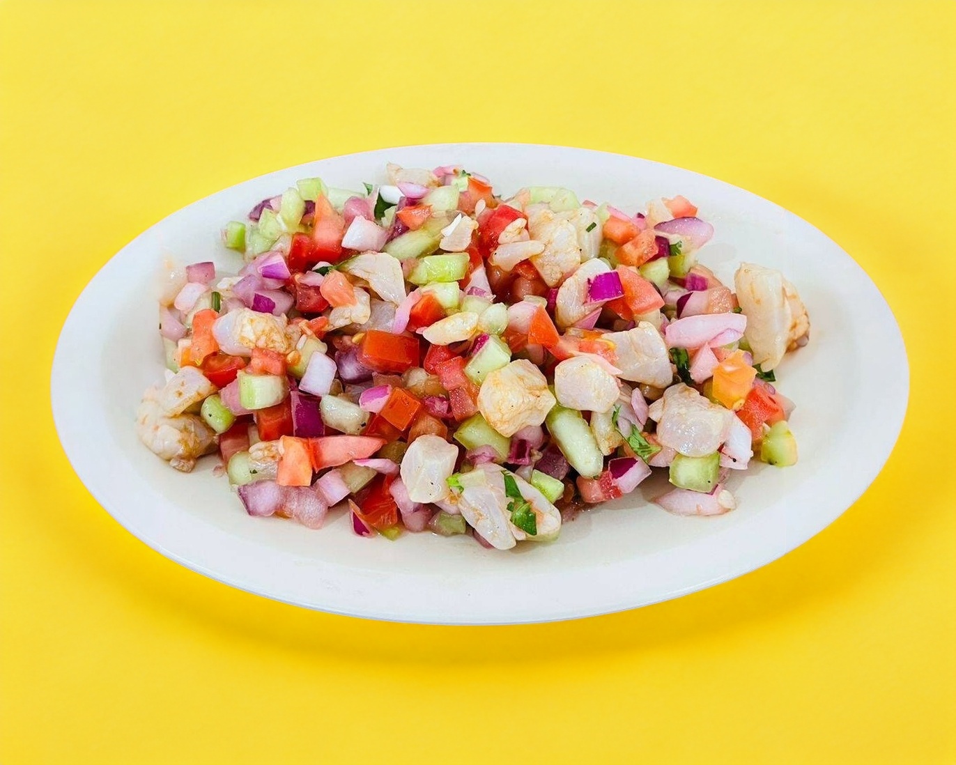 CEVICHE TRADICIONAL DE PESCADO SALSEADO Y VERDURAS.