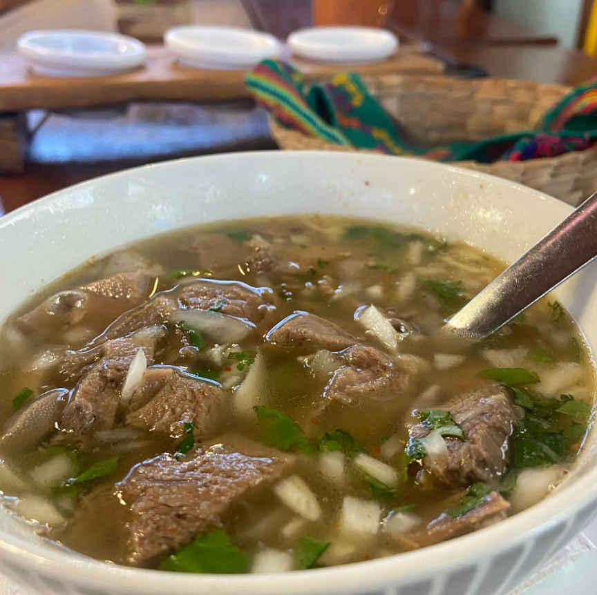 Sopita con chorizo o huevo a elegir, un tamal de elote dorado o natural a elegir y jocoque. Acompañado de frijolitos con queso.
