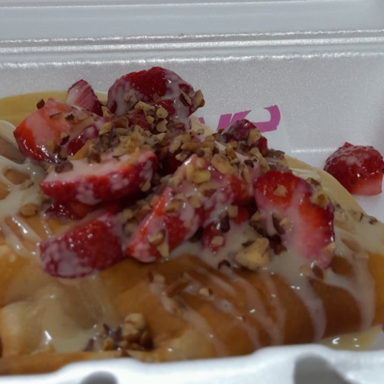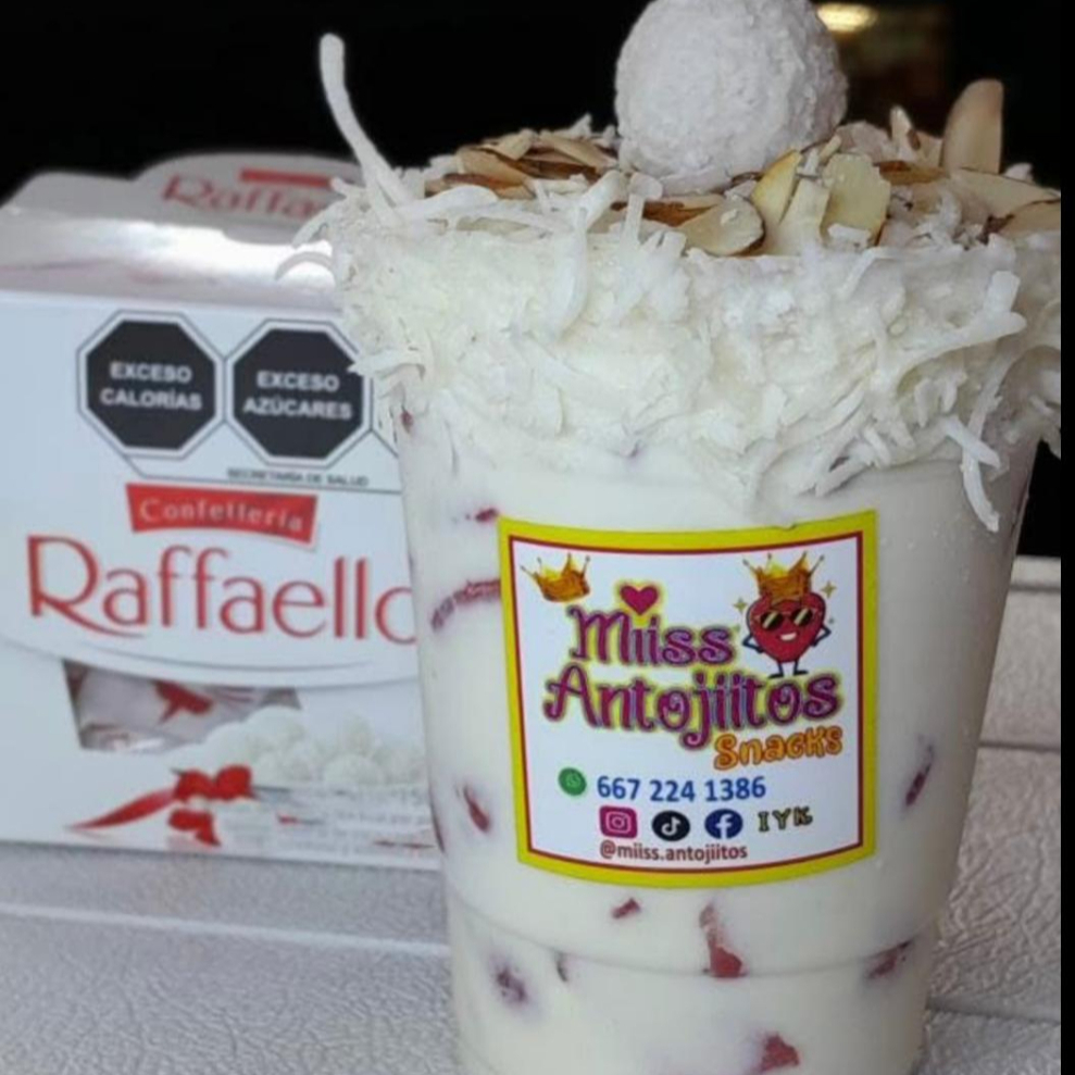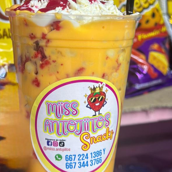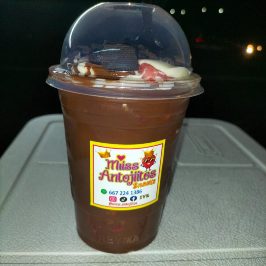 vaso de medio litro o cajita,fresa congelada y picada,topping y jarabe a elegir y Pay casero