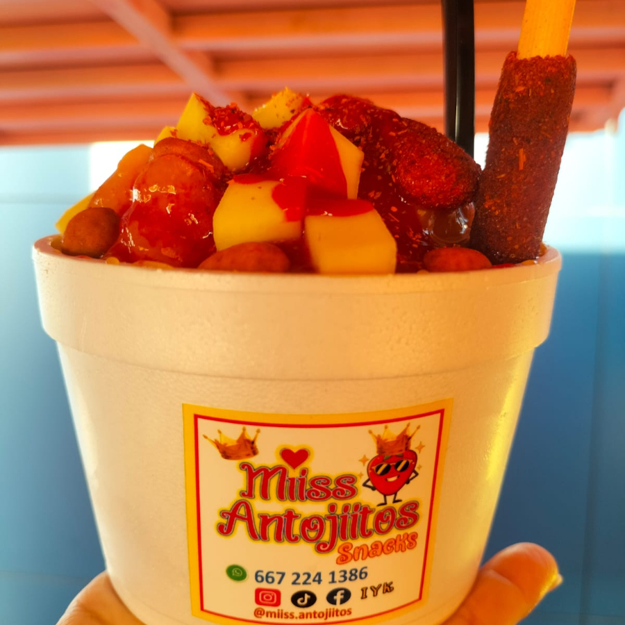 Churros,pepino,salchicha,cuerito,realito,cacahuate,clamato