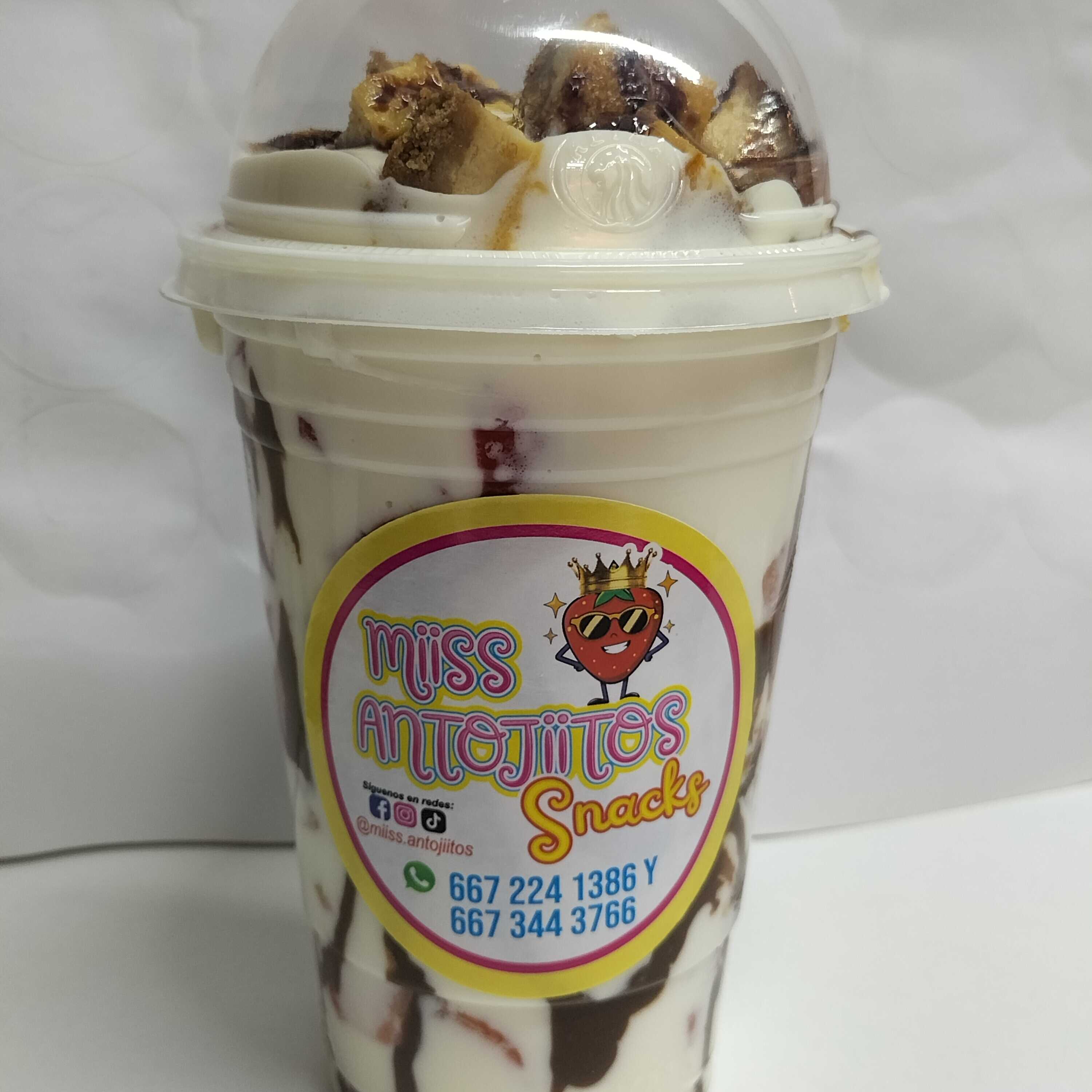 Fresa congelada,crema,pay y topping y jarabe a elegir