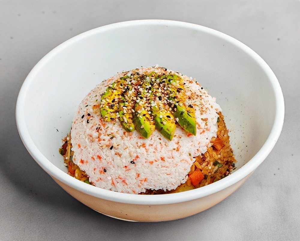 Arroz Blanco con Camaron,Res, Pollo con Topping De Philadelphia,Anguila y Furikake