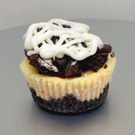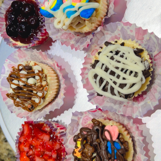 Mini Cheesecake de Ordeo con topping y chocolate.