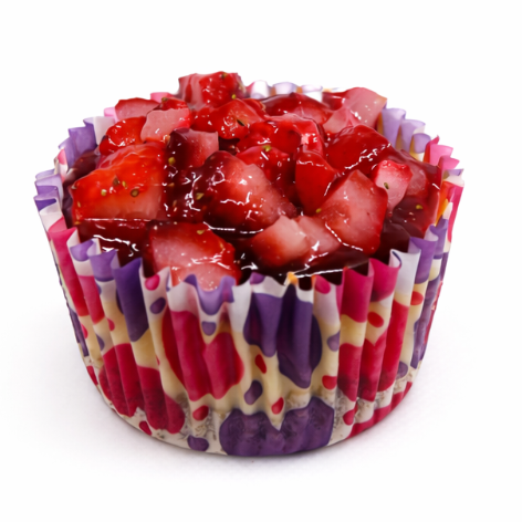 Mini cheesecake con mermelada de fresas y fruta fresca.