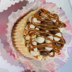 Mini cheesecake con nuez, chocolate y cajeta.