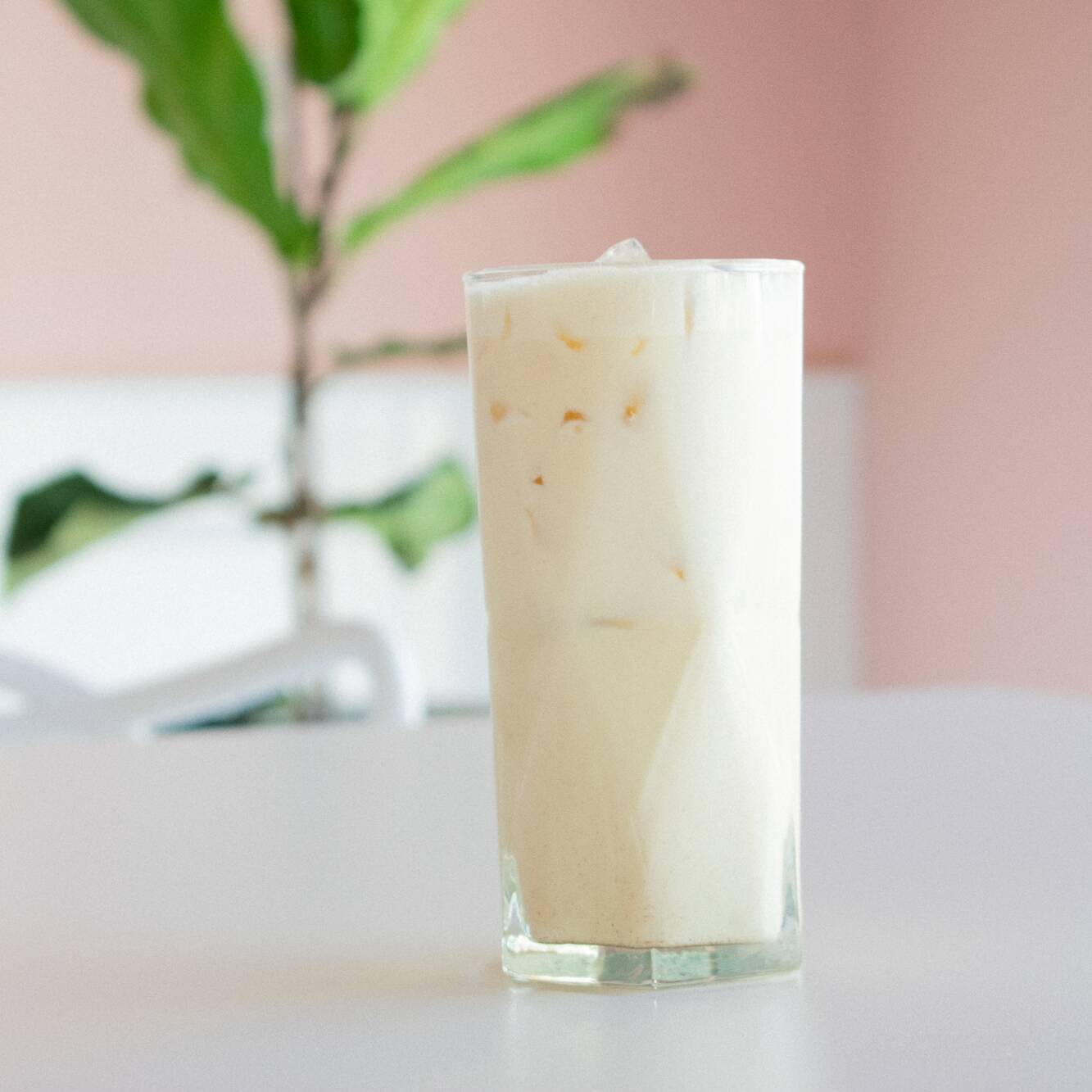 Un shot de expreso largo, hielo, leche.