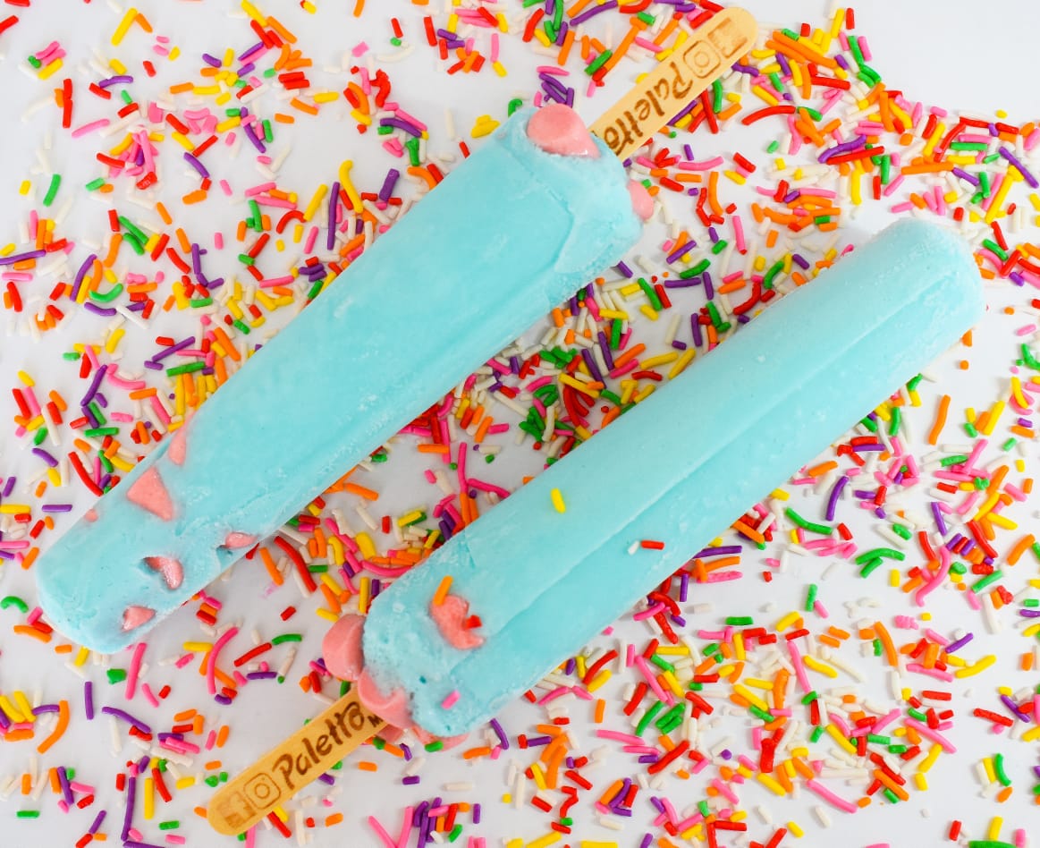 Recuerda tu niñez con esta paleta de chicle azul con bombones rosas. La aman niños y adultos