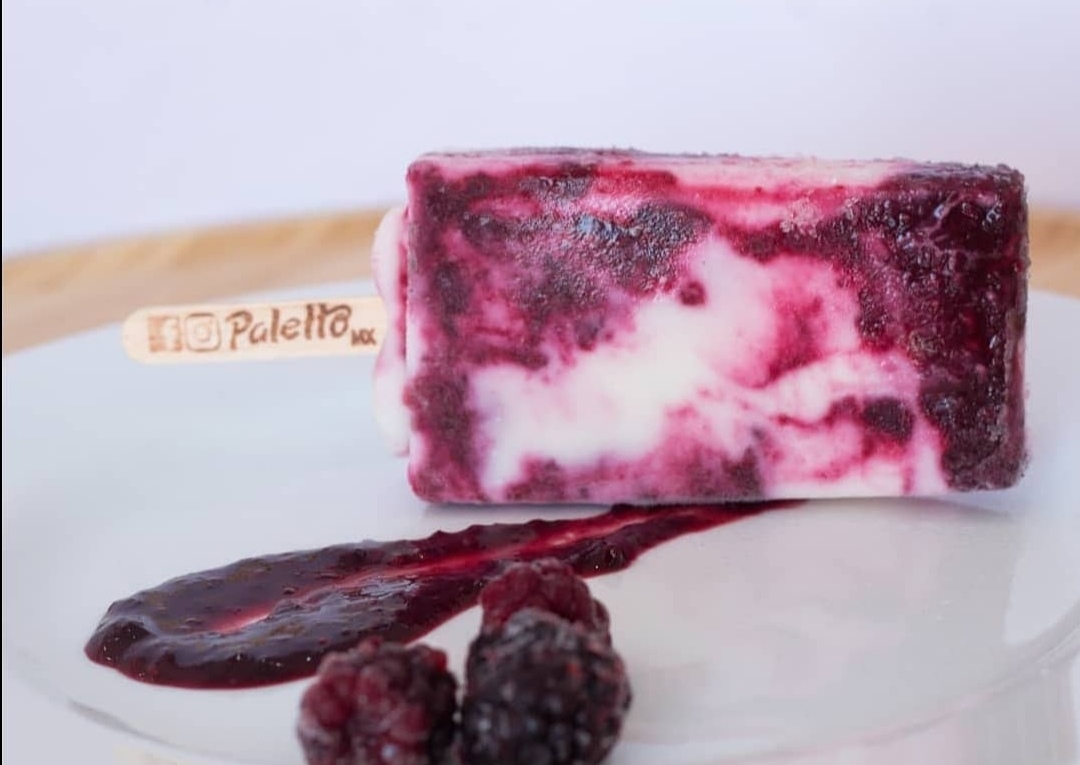 Una de nuestras más ricas palettas, hecha con yogurth orgánico y zarzamoras 🍇 sugerimos pedir la mitad forrada con coco tostado