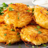 4 Deliciosas tortitas de papa rallada acompañadas de una salsa de tomate para bañarlas.
