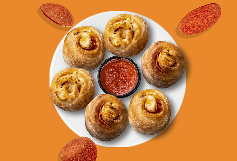 6 piezas de rollos rellenos de pepperoni, ranch y queso mozzarella.