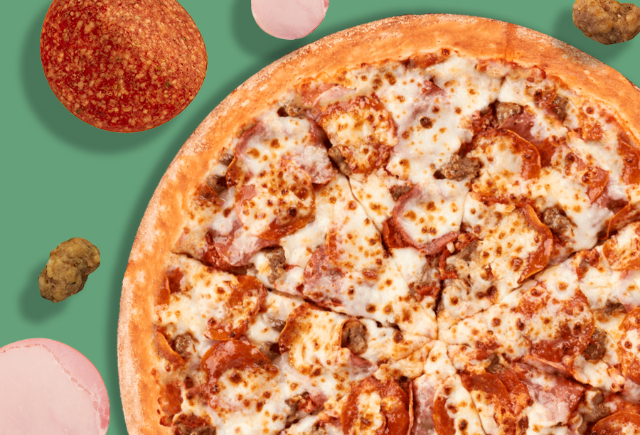Pizza de carnes frías; pepperoni, salchicha de puerco, carne de res, jamón y tocino.